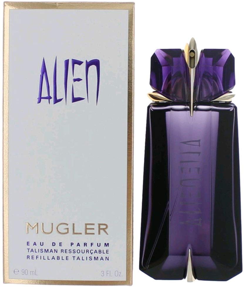Brand New in Box Distinctive and mysterious, yet comforting and soft, Alien by Thierry Mugler conveys passion sensuality and the essence of absolute femininity. A rich floral woody amber containing jasmine sambac, cashmeran wood and white amber it is a fragrance whose magic trails awakens your emotions. A scent like no other it is irresistibly appealing and totally out of this world.