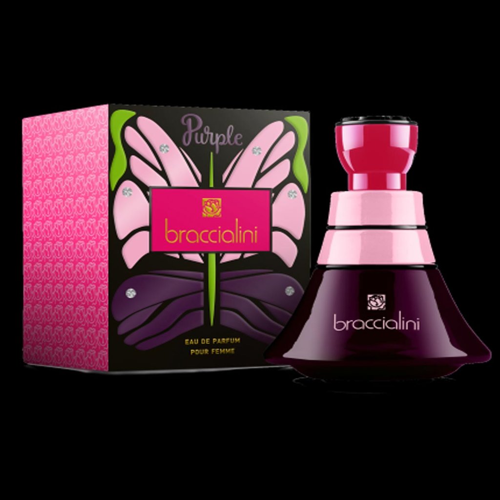 - Launched in 2016, Braccialini Purple is an oriental floral perfume for women that was designed by master perfumer Alexandra Monet. The perfume was produced by the Italian accessories company, Braccialini. Opening notes contain a crisp a fruity blend of black currant, pear, and mandarin orange.